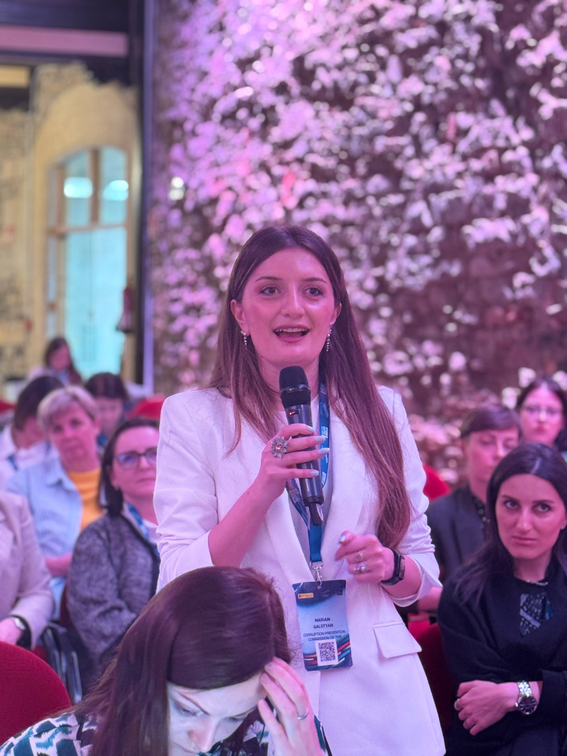Mariam Galstyan moderated the roundtable discussion titled “Civil Society and Digital Tools in the Fight Against Corruption.” During the thematic discussion, participants presented regional anti-corruption digital tools, discussed the challenges related to their use, the role of civil society, and issues aimed at strengthening cooperation with the state.