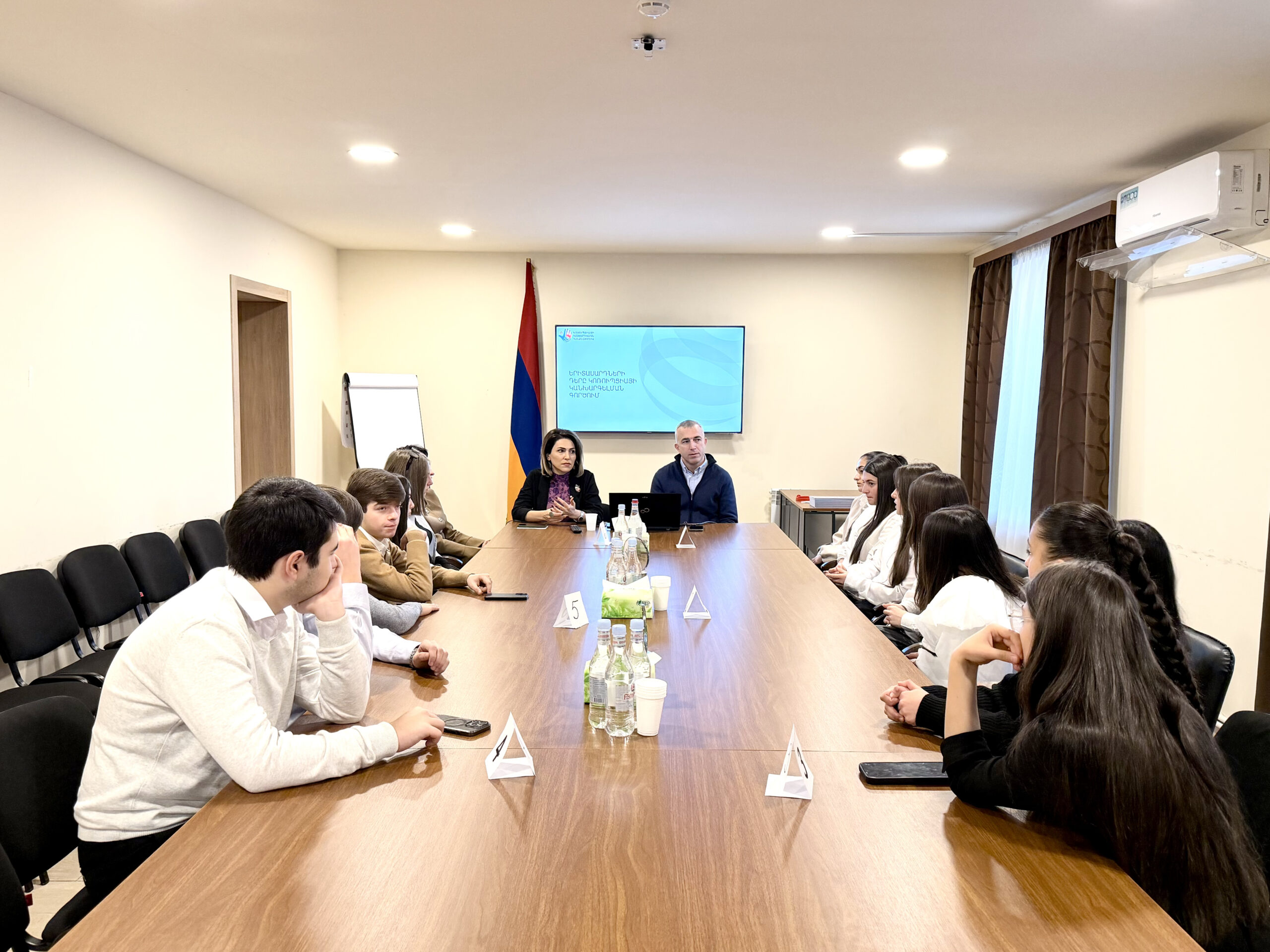 Դեկտեմբերի 19-ին Կոռուպցիայի կանխարգելման հանձնաժողովում հյուրընկալվել են Հրազդանի N1 ավագ դպրոցի Հակակոռուպցիոն ակումբի աշակերտները, ովքեր իրենց ակտիվ մասնակցությունն են ունենում հակակոռուպցիոն ծրագրերի մշակման և իրականացման գործընթացներում՝ նպաստելով երիտասարդների շրջանում հակակոռուպցիոն արժեքների տարածմանը։